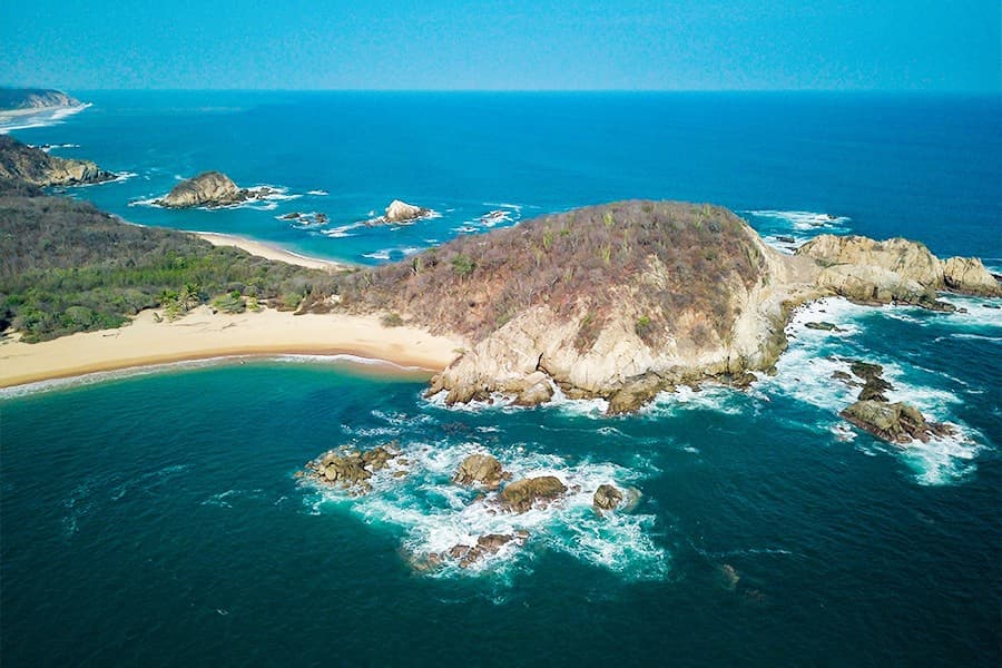 Huatulco The perfect combination through the Santa Cruz, Órgano, Maguey, Cacaluta and Chachacual bays. Put on your swimsuit because we will swim on the Chachacual bay, beautiful and clear waters. We continue through the Maguey bay to enjoying the golden sand and emerald clear waters, between beautiful mountains. You will also have the option to try Oaxaca cuisine (not included) such as the grated cheese shrimp filled pineapple or fried fish with garlic. Return to the marine and transfer to the hotel. Accommodation.