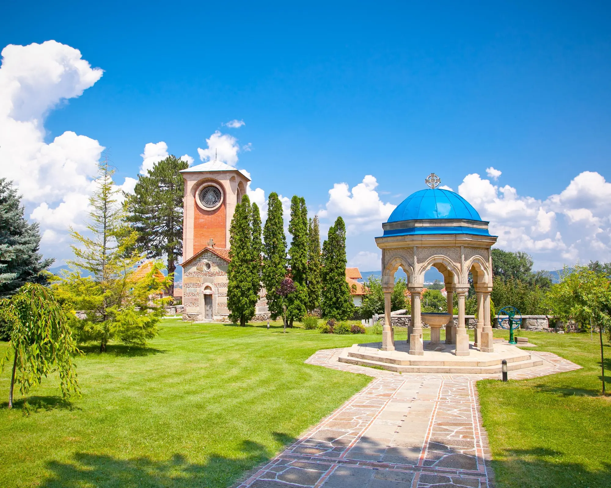We’ll journey south through Serbia, stopping first at the archaeological site of the Roman city of Viminacium (admission included). At its peak, the city was home to 40,000 inhabitants. Here, we’ll admire the Roman roads, as well as the remnants of ancient temples, streets, plazas, amphitheaters, palaces, hippodromes, and thermal baths. Our next stop will be the Manasija Monastery, one of the most important monuments of medieval Serbian culture. Surrounded by towering walls, the monastery’s church still preserves its 15th-century frescoes. We’ll continue to Nis, the third-largest city in Serbia, with a rich Roman heritage. This is where Constantine the Great was born. Overnight accommodation will be here.