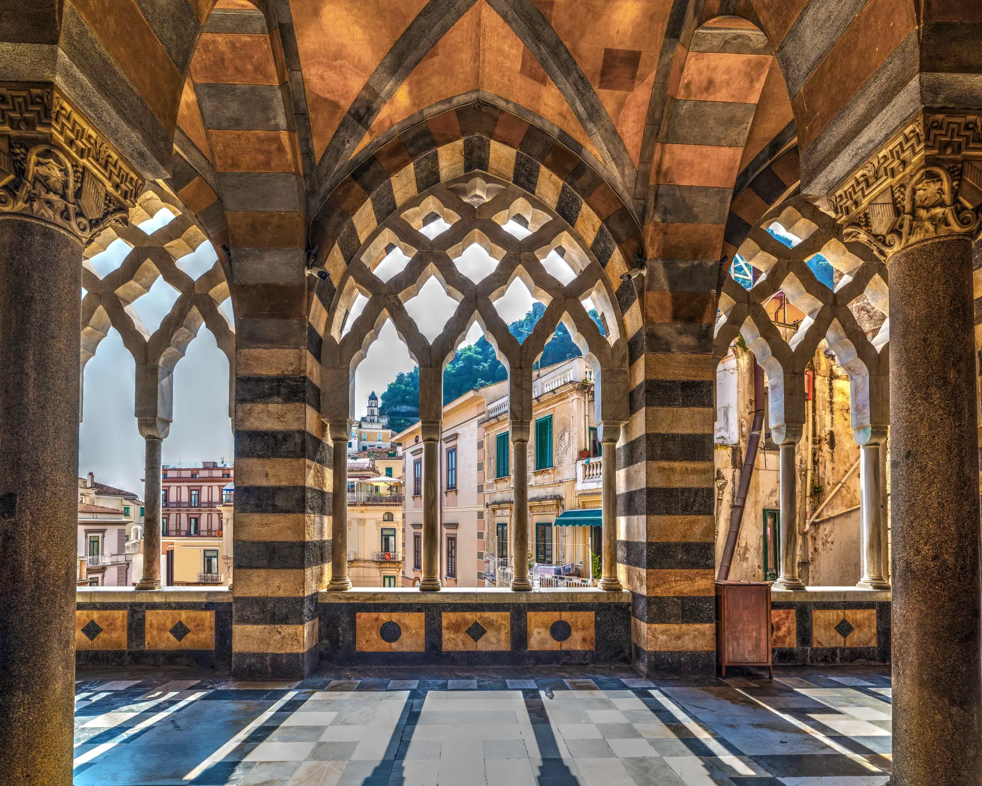 La côte amalfitaine est une étendue de côte située sur la côte sud de la péninsule de Sorrentine, dans la province de Salerne, dans le sud de l'Italie. La côte amalfitaine est une zone de grande beauté physique et de diversité naturelle. Il a été intensément installé par les communautés humaines depuis le début du Moyen Âge. Amalfi et Ravello sont des villes avec des œuvres architecturales et artistiques d'une grande importance. Punta Campanella est l’une des nombreuses zones de surveillance maritime existant en Italie. Cette zone prend deux provinces, Napoli et Salerno, et est une grande attraction touristique. La cathédrale d'Amalfi est un complexe architectural composé de deux églises communicantes, d'une crypte, d'un escalier, d'un atrium, d'un clocher et d'un cloître appelé «Chiostro del Paradiso».